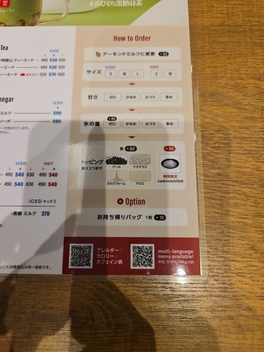 Gong cha Nihonbashi Menu